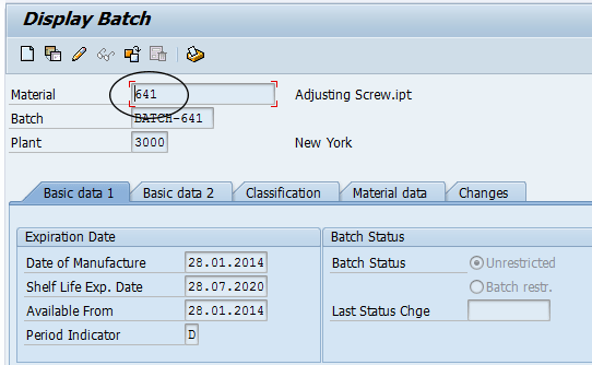 In Figure 13, in the Basic data 1 tab, you maintain the date of manufacture, shelf life expiration date, available from date of the batch. The Period Indicator is the unit of measurement used for maintaining the shelf life expiration details. In our example this indicator is D (daily maintained by system).
