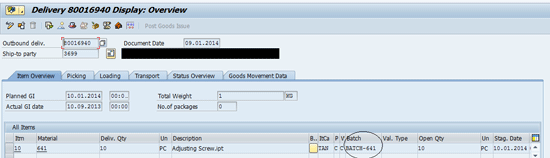 The goods issue of 10 pieces is done from the BATCH-641, which can be seen from the material document generated because of the movement of data from BATCH 641.