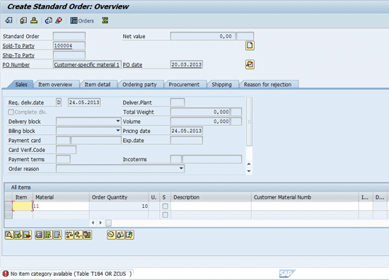 By using this process, when a sales order is entered for the customer-specific material for an eligible customer, the system allows the usual processing of sales order by determining the regular item category. However, if that customer-specific material is entered in a sales order for a customer to whom this material is not supposed to be sold, then the system does not determine an item category and produces an error message.