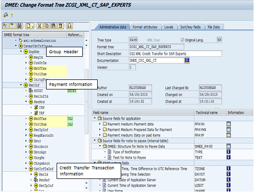 Now that the XML tree is created, you can assign it to a payment medium format and then to a payment method. We go through the mandatory configuration steps to produce the XML payment file. The configuration steps here are not a comprehensive list of configuration steps as this article focuses primarily on the CGI XML structure and how that specifically can be done in the SAP system.