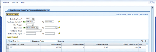 If you choose one of the reports in the list, you see a detailed report for the FTEs on your cost center (Figure 10). Again, this data is being accessed in real time from the tables in the controlling application.