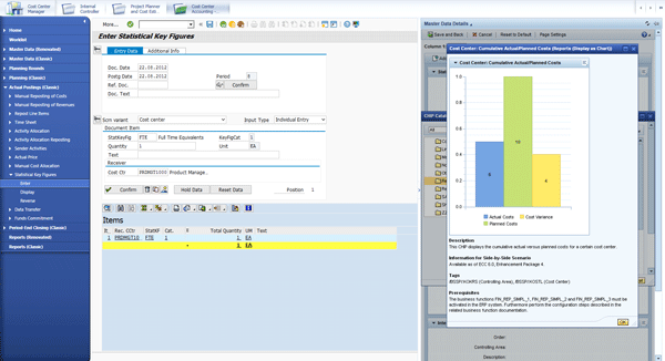 In enhancement package 6 for SAP ERP 6.0, SAP offers entry pages for many of the delivered roles and side panels to enhance the transactions within those roles. I explore these enhancements using the role for Cost Center Accounting (SAP_EP_RW_CO_KSMN). For details of the settings for the other transactions included in this role, refer back to “Should Your Financials Team Consider the Portal?”