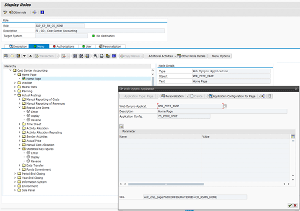 After looking at the enhancements from the perspective of the end user, I now want to explain how to work with your system administrator to include such entry pages and side panels in your existing roles. In most cases, you won’t be working with the SAP role SAP_EP_RW_CO_KSMN directly, but you define your own roles for compliance purposes. Once you know where the entry pages are, you can easily copy these entry pages into your roles and link your roles with the relevant side panels.