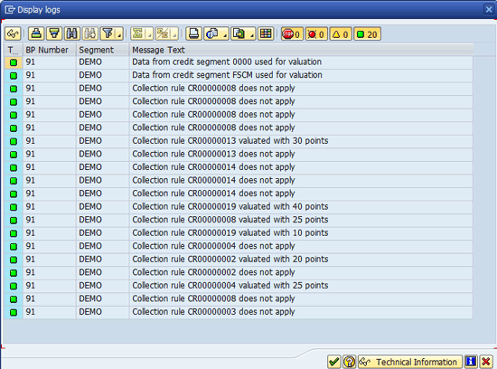 Figure 4 shows the display log for the collection strategy for the customer once the due date field has been altered by 10 days. Line 3 does not apply (the exit rule), and some of the other rules have been met, leading to valuation for the customer.