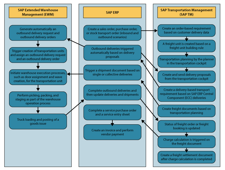 Process flow between ECC, SAP TM, and EWM