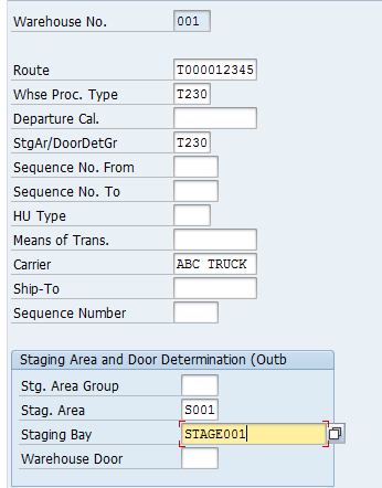 Maintain parameters for staging areas and door determination