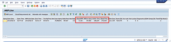 For the first example, consider a material that was planned in less than one second on a classic MRP transaction (all the materials used in this example have the same settings as the same average number of planning elements).