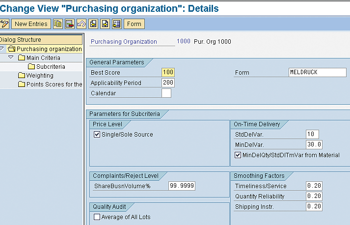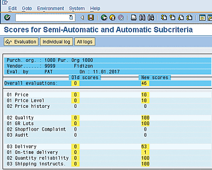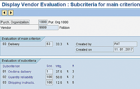 These factors usually caused delayed delivery and increased costs because of unplanned delivery costs, reduced quality, returns, material shortages, slowdown of production, and the inability to meet market demand for the product. One advantage of automatic Vendor Evaluation is that it provides you with factual figures without interference from users.