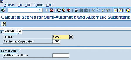 To carry out this task in the SAP system use transaction code ME63 or follow SAP menu path Logistics > Materials Management > Purchasing > Master Data > Vendor Evaluation > ME 63 -Automatic New Evaluation. See