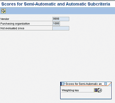 Figure 26), input the required purchasing organization, the range of vendors for whom you want to rank scores, and a weighting key. Click the execute icon to generate the ranking report.