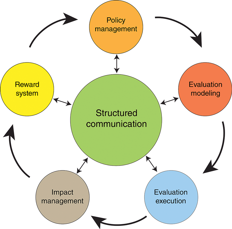 This methodology has six phases: structured communication, policy management, evaluation modeling, evaluation execution, impact management, and reward system.