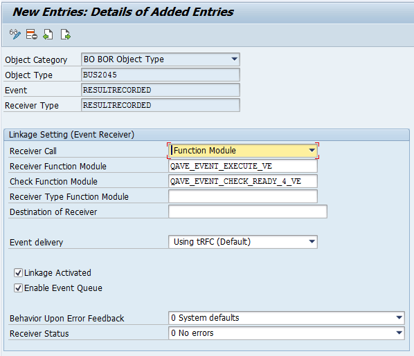 - Receiver Function Module: QAVE_EVENT_EXECUTE_VE