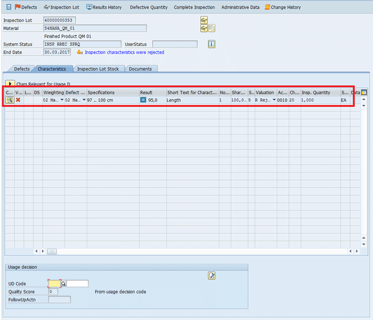 In addition, if at least one of the inspection characteristics is not accepted, the automatic usage decision does not take place.