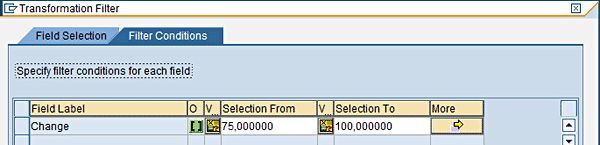You can now define the filter to the relevant change of sales revenue. Double-click the filter element you previously created and choose the relevant filter value in the Field Selection tab (Figure 5). In our example, the Change field contains the relevant information. Because we are using a query, the name of the field will vary according to our particular organization’s query and business requirements.