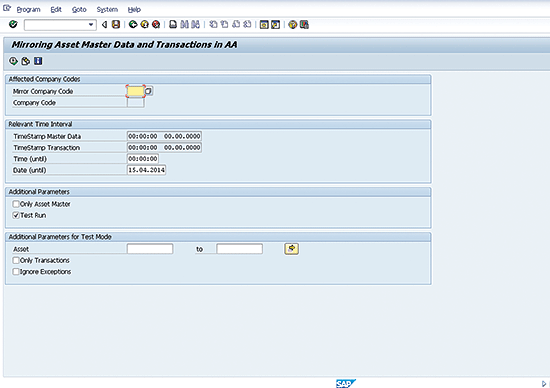 The tool replicates the asset accounting master data creation and changes most postings from the original company code (OCC) to the secondary company code (often referred to as the mirror company code [MCC]). The Multiple Calendar Tool allows mapping of asset classes and master data from the OCC to the MCC. The system is configured so that the asset numbers are the same in both company codes. Most of the fields on the asset master record can be mirrored to the asset in the MCC. Most transactions are also mirrored to the asset in the MCC. The activity is done via an asset mirroring program that can be run on demand or scheduled as often as needed (Figure 1). Most users run the program on a weekly basis to keep the companies as closely synchronized as possible.