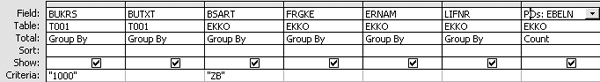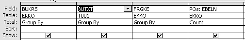 In Figure 14, the summary forensic audit query results show that a lot of POs did not require a PO release because the release indicator field is blank. To understand whether this is a corporate-wide problem or an issue in one area of the company, you can modify the PO release query in Access to include the company code (i.e., BUKRS) (Figure 15).
