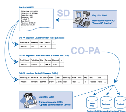To wrap up, summarization levels are an additional set of tables that are stored separately from segment-level tables. They have their own subset of data, and are defined in the CO-PA configuration. Summarization-level tables are faster to access than segment-level tables because they contain only a subset of the segment level table data. Summarization-level tables are not filled at the time of record posting; they are filled separately through the execution of a program, which can be run directly, or can be scheduled to run at prescribed time intervals (usually nightly or weekly).