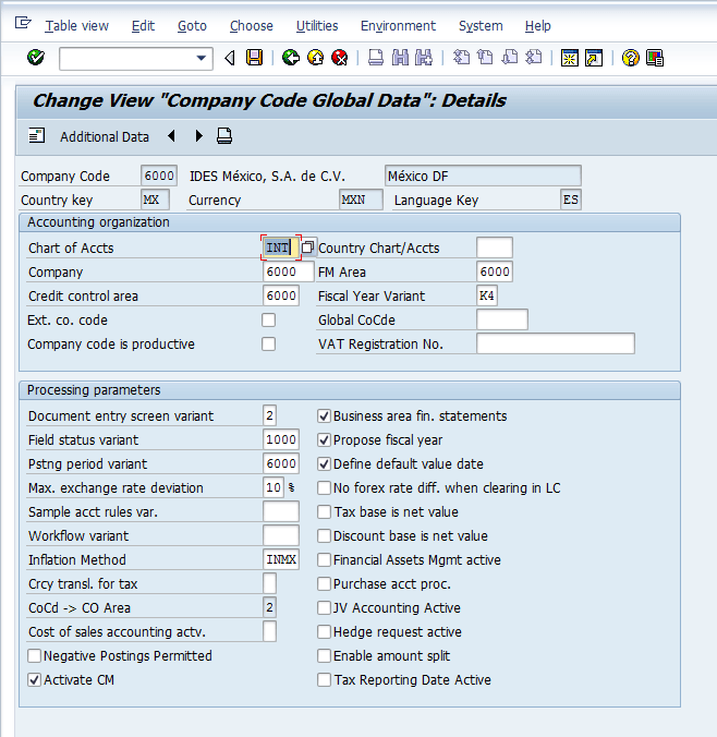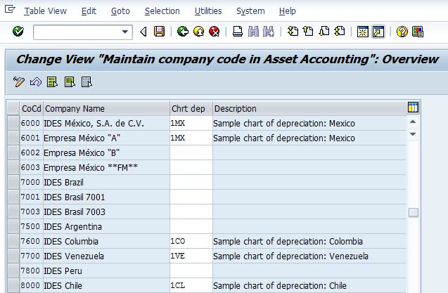 As shown in Figure 1, company code 6000 has been assigned to chart of depreciation 1MX. You can see charts of depreciation 1CL and 1VE created for Chile and Venezuela, respectively, where inflation-based revaluation is also required.