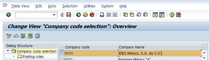 After selecting company code 6000, click the Posting rules folder under Company code selection as shown in Figure 7. This action displays the screen shown in Figure 8.