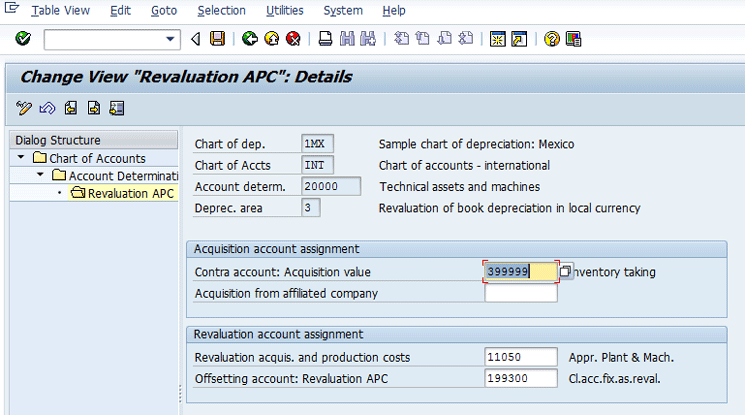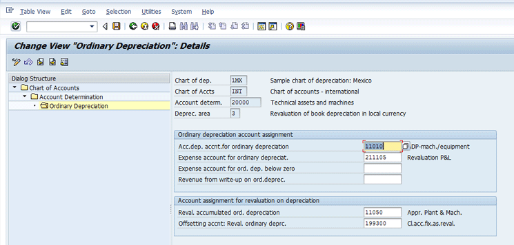 To explain the configuration for inflation-based revaluation, I use an example of a chart of depreciation 1MX (for Mexico).