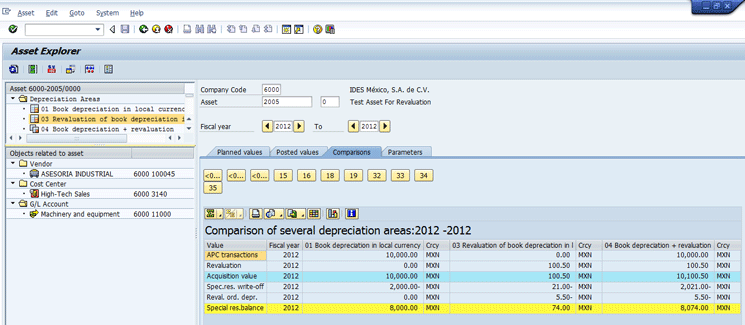 - Revaluation for depreciation: (accumulated depreciation until March 2012 X {April Index- March index})- acquisition cost. When you apply this formula, revaluation to APC comes about MXN 5.50 as calculated by the system.