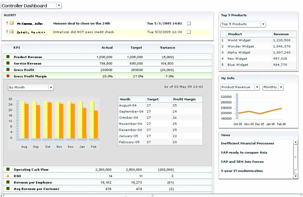 - Xcelsius 2008. Xcelsius 2008 products focus on various presentations, for example the dashboard shown in Figure 4. (Discussion of this product goes beyond the scope of this article.)
