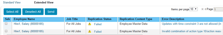 The Data Replication Monitor shows the status of the employee replication and allows you to monitor the replication activities. For any replications in Failed status, you can view the error messages and make note of any issues that need to be fixed (Figure 3). If the issue is on the Employee Central side, once you update the employee record, the employee replication process is automatically re-triggered. If the issue is on the SAP ERP HCM system side (e.g., a mapping issue or missing configuration), once it’s been fixed, select the Employee Name and click the Send button to trigger the replication process.