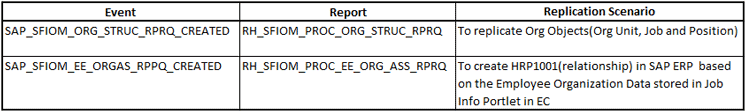 A separate event is created for master data replication, organizational object replication, and organizational assignment replication. You have to schedule separate background reports tied to each event to complete the replication request from the staging table. Once the scheduled jobs are successfully completed, the replication of data from Employee Central to SAP ERP HCM is completed.