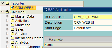 Go to the new CRM WebClient UI Business Server Page (BSP) application. To add the CRM WebClient UI, right-click Favorites, select Add other objects, and then select BSP application. Figure 1 shows the information you need to add to this screen.