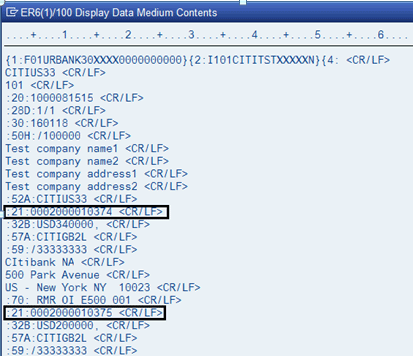 You are now ready to generate a few MT101 payment files from SAP and validate that the :21: tag for each payment contains the payment document number for the payment.