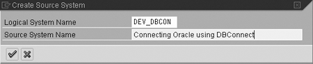 Select the button for Database System (Data and Metadata Transfer Using SAP DB Connect). Click on the transfer icon to confirm the selection. Assign a Logical System Name in the pop-up screen (Figure 2). It should be a meaningful name. We selected DEV_DBCON since we are connecting a development system using DB connect.