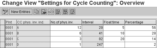 Physical Inventory>Physical Inventory>Cycle Counting (Figure 12). The settings for this