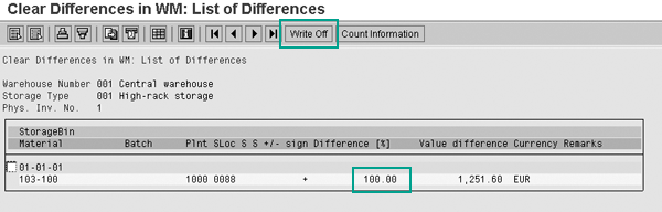 With dynamic cycle counting, you also can clear the inventory count in WM automatically if the count results in no differences between the physical situation and the system information. Dynamic cycle counting is particularly suitable for non-stop operations because it allows you to carry out the inventory counts without affecting the inbound and outbound processes.