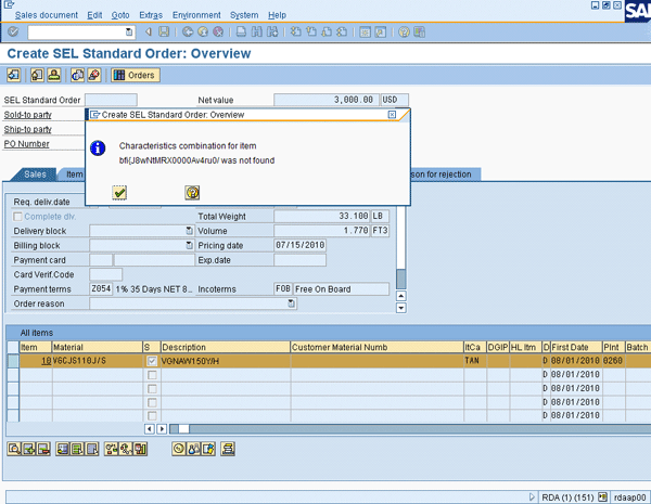 What would happen if a sales order for the product VGCJS110J/S for customer CUSTOMERD1 (belonging to the customer group RET) is received? The expectation would be that the system should be able to confirm based on the allocations maintained at customer group level (because the customer group is RET). However, you would see the CVC error shown in Figure 11.
