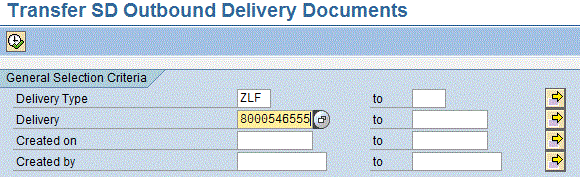 Once you transfer the restitution-relevant sales orders to SAP BusinessObjects Global Trade Services, you have to transfer the corresponding deliveries and billing documents. You can transfer outbound deliveries by clicking the execute icon in the Transfer Outbound Delivery Documents row under the Initial Transfer of Documents to SAP GTS section shown in Figure 7. You reach the screen shown in Figure 9. In the Delivery field enter the outbound delivery document number and populate the Delivery Type field. Click the execute icon to transfer the delivery to SAP BusinessObjects Global Trade Services.