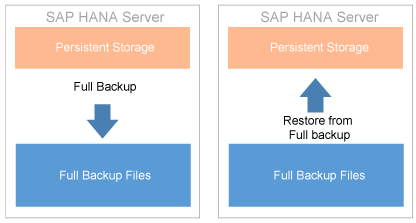 Figure 1, a full backup captures the complete state of all persistent data in the SAP HANA system. When you recover from a full backup, the SAP HANA system contains only the data from that point in time.