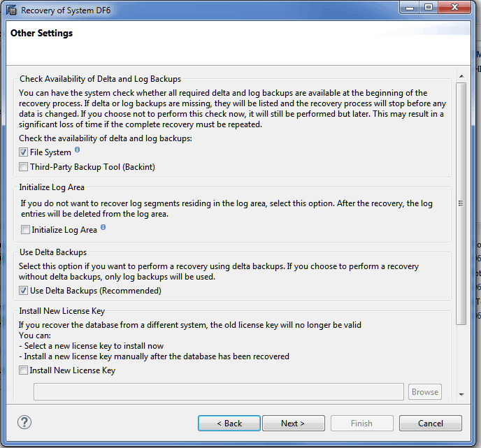 In the Use Delta Backups section you can choose to restore using delta backup files or log-segment backup files. As you recall from earlier, there can be overlap between the two types of files. It is recommended that you use the delta backup files when available. If they are not available, the log-segment backups can be used as an alternative.