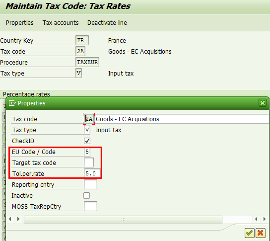Figure 4 shows the properties of destination tax code 2A. You can see that it is important that both EU codes are the same. In this example code 5 is used to indicate that the EU code is the same for both tax codes.