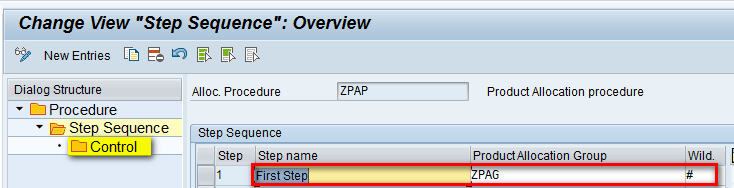 In the next screen (Figure 22), enter a name of the step in the field under Step name (e.g., First Step). Under Product Allocation Group enter a name (e.g., ZPAG), and under Wild., enter a symbol (e.g., #). Now click the Control folder as shown in Figure 22.