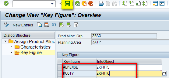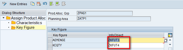 Follow the same steps as defined in the above section to connect the Planning Area to the Product Allocation Group and characteristics and key figures are assigned as shown in Figures 54 and 55.
