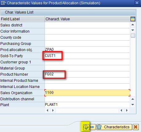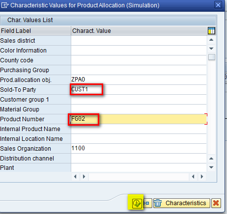 In the Prod. Alloc. Grp (product allocation group) field of the next screen, enter a name (e.g., ZPAG). In the Comm.structure field, enter MCVBEP, and in the Check Date field, enter MBDAT (material availability date). In the Time bkts profile (time buckets profile) field select Month from the drop-down list of options and then click Characteristics as shown in Figure 18.