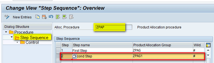 The same Product Allocation Procedure that was defined in the above section (ZPAP) is used. The second step is defined in the ZPAP Product Allocation Procedure containing the new Product Allocation Group (ZPAG1) as shown in Figure 49.