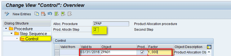 The Product Allocation Object is used to define the bottleneck in the order development process. To define a new Product Allocation Object, click Maintain Product Allocation Object (Figure 13), and in the next screen, click the New Entries button as shown in Figure 15.