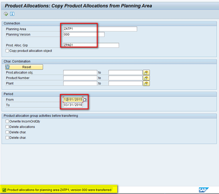 Transfer Product Allocation Quantities from the Planning Area to the Product Allocation Group
