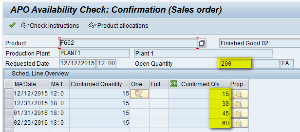 Availability checks, also known as available-to-promise (ATP), are used to check if the requested product can be delivered to the customer in the requested quantity and within the requested time. Product allocation is one of the availability check methods provided by SAP Advanced Planning and Optimization (SAP APO). Product allocation gives businesses the flexibility to manage the supply of scarce products so that you avoid allocating all the supply to one customer or region. Instead, you can do an allocation so that each customer or region receives an allocated amount.