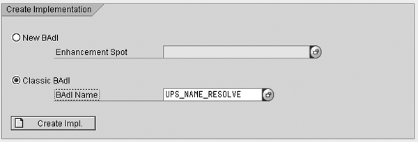 Create a new BAdI based on UPS_NAME_RESOLVE