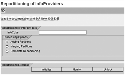 - The InfoProvider contains no initial partition, making it one large partition that needs to be re- partitioned