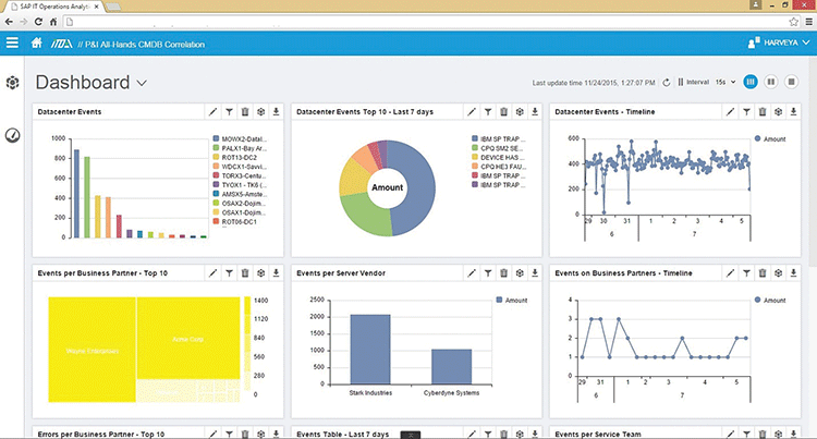 SAP IT Operations Analytics can stream events to your data center in real time from multiple data sources to perform advanced analysis. IT practitioners can use a highly customizable dashboard to view diverse streams of data, helping them anticipate possible incidents, such as spikes in energy consumption or upcoming network outages. From there, they can correlate data patterns from multiple streams to more efficiently detect incidents, find their root causes, and stop incidents before they occur.