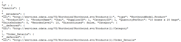 The service root URI and the resource path can be supplied with further query options. The query option allows you to control the amount (or order) of returned data or to get further information on the specified resource. Figure 6 is an example.