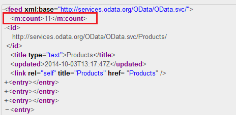 …../Categories(1)/Products?$inlinecount=allpages&$format=xml